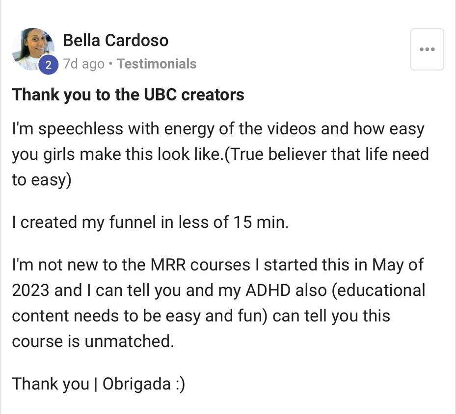 Get instant access to the UBC community where you can network & ask questions. We host weekly calls on mindset & business. You'll also get access to my exclusive mentorship chat